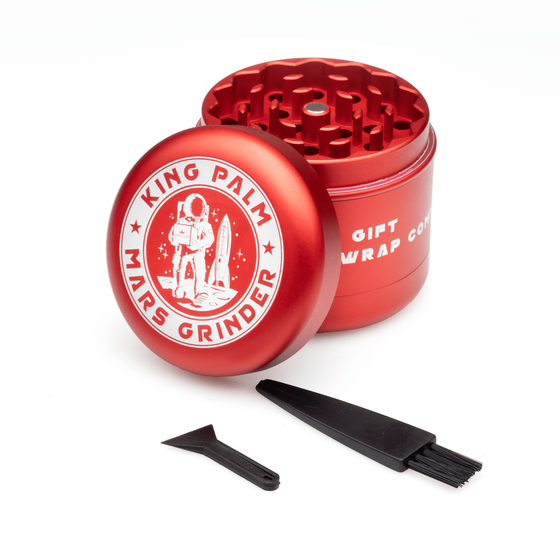 King Palm's 4-Piece Mars Grinder is built to last - featuring a sturdy aluminum construction, it'll keep you rolling right.